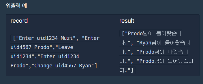 answer 배열에 `${id}님이 ...했습니다.` 를 넣고 map, replace를 할까 했지만 시간초과로 계속 오답이 됐다.