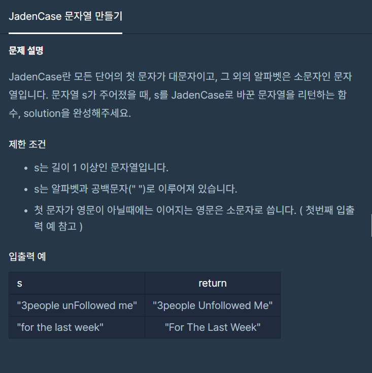 [프로그래머스] Jaden Case 문자열 만들기 본문