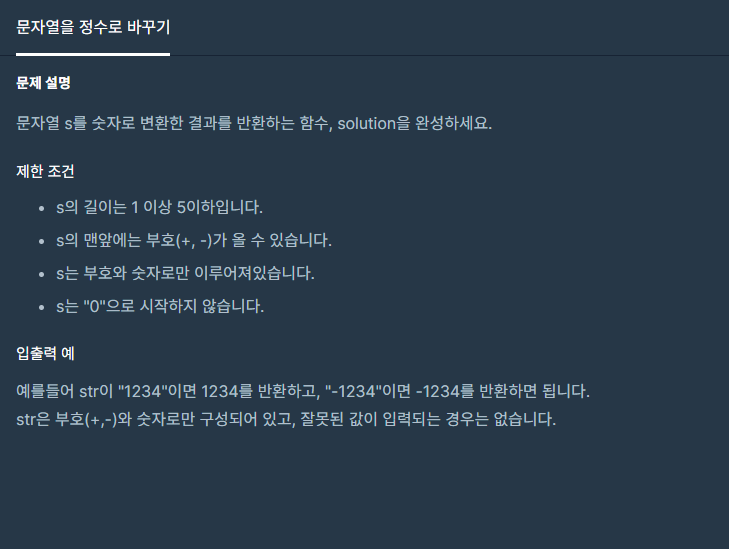 [프로그래머스] 문자열을 정수로 바꾸기 본문