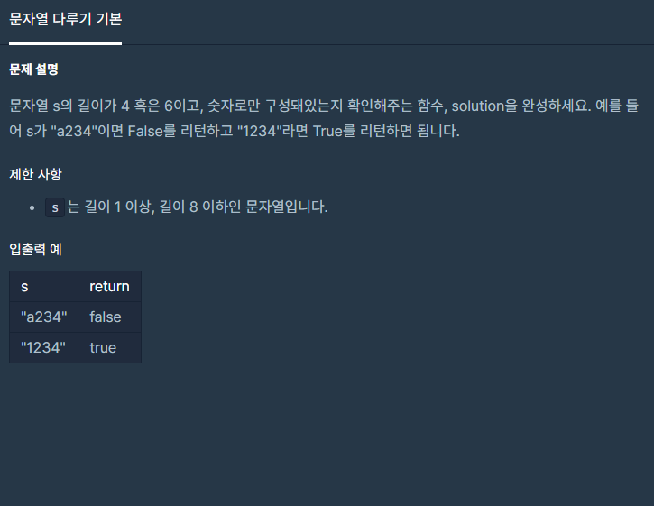 [프로그래머스] 문자열 다루기 기본 본문
