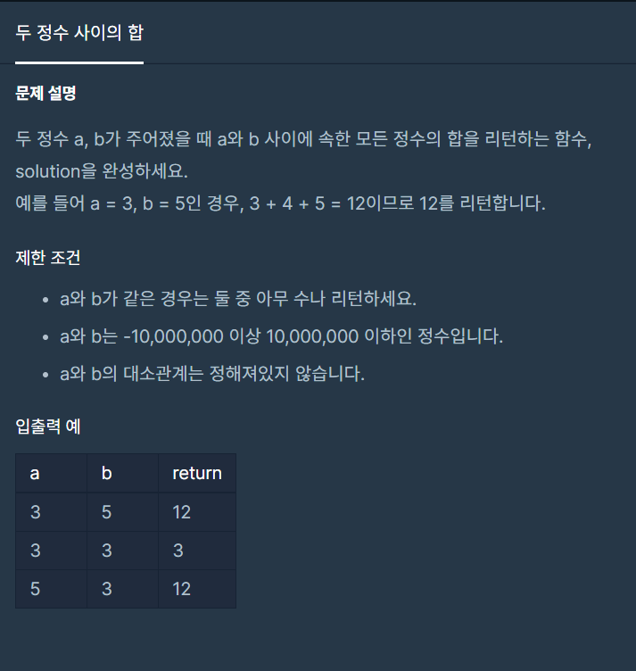 [프로그래머스] 두 정수 사이의 합 본문