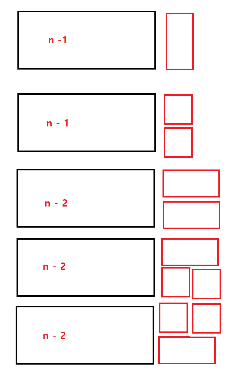 처음 n - 2 일 때만 3개, n - 4가 2개, n - 6이 2개, ... 로 0번째 일 때까지 -짝수번째 항은 2개의 경우가 존재함.