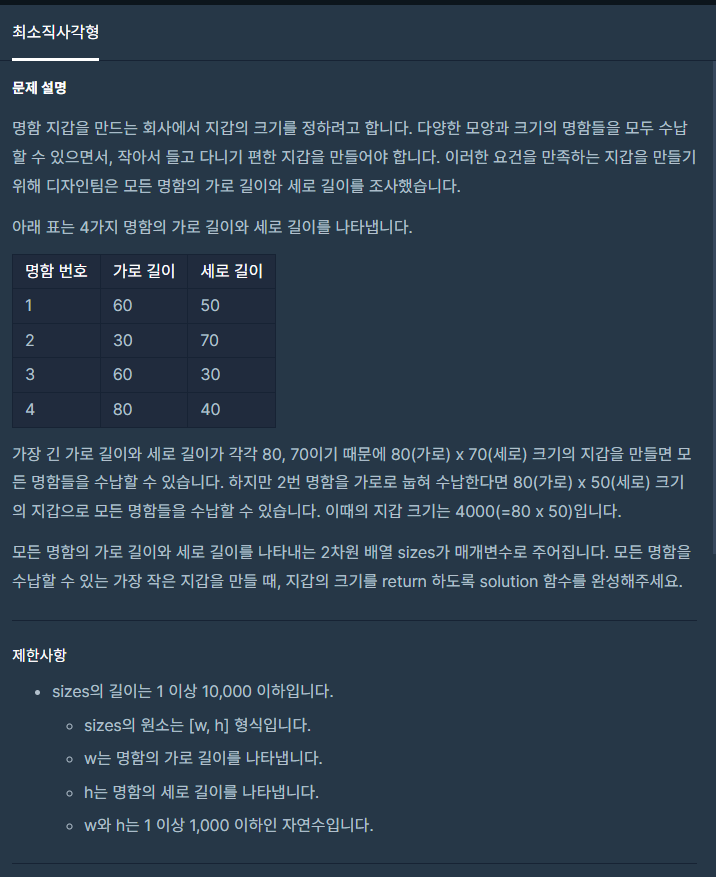 [프로그래머스][위클리챌린지] 8주차 최소직사각형 본문