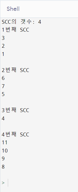 print(f'SCC의 갯수: {len(SCC)}')