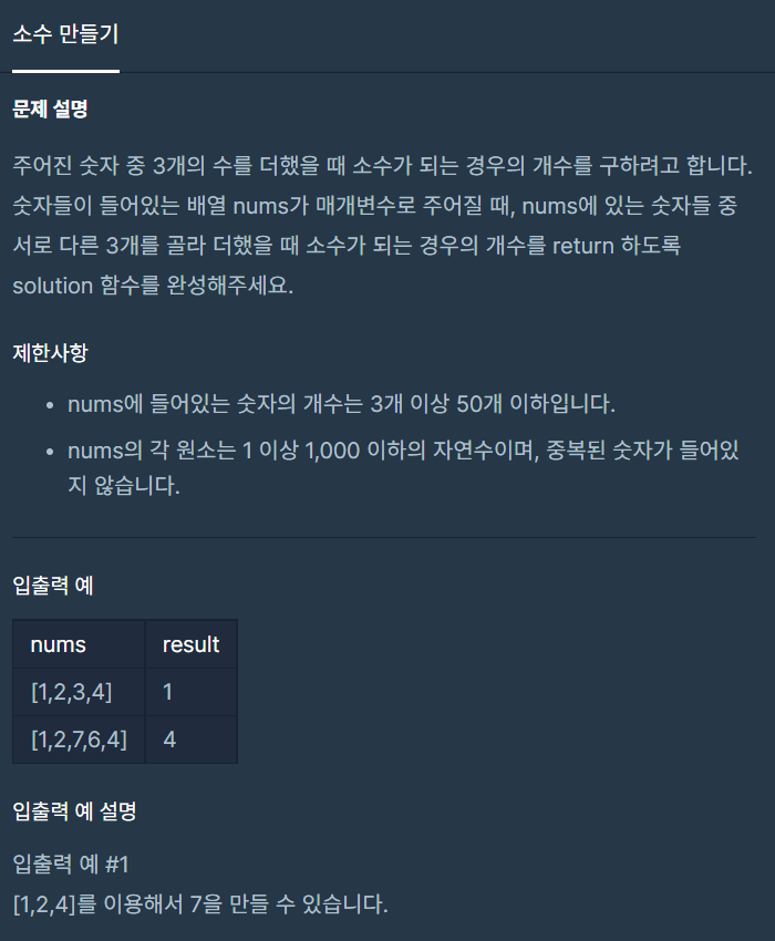 [프로그래머스] 소수 만들기 본문