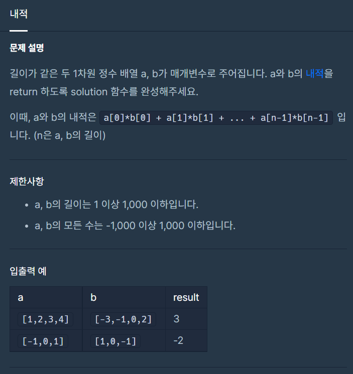 [프로그래머스] 내적 본문