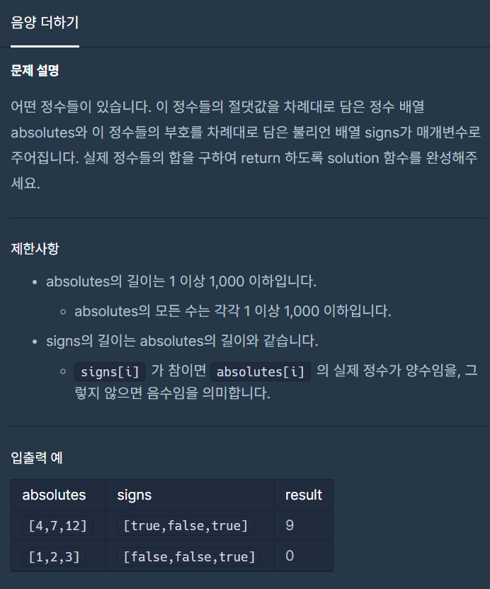 [프로그래머스] 음양 더하기 본문