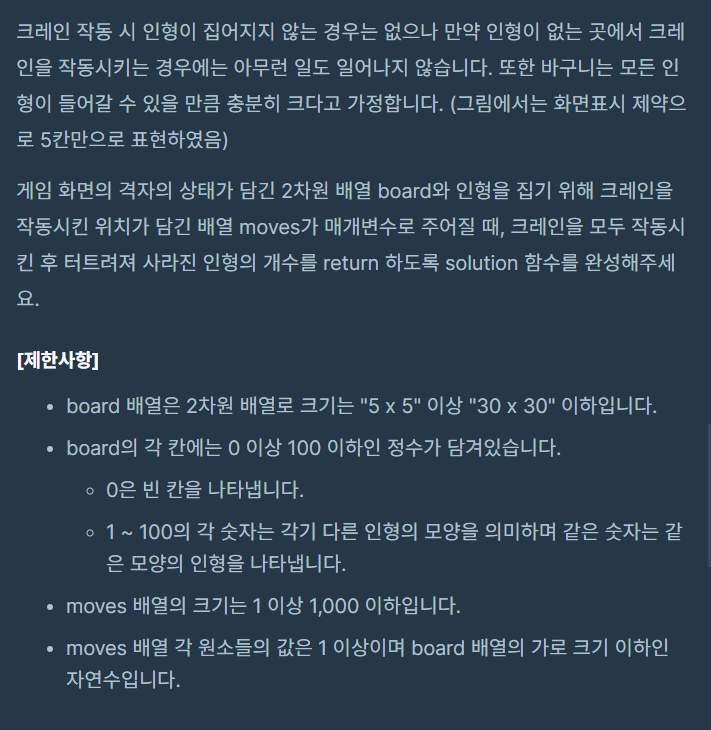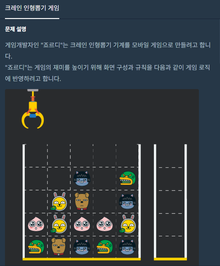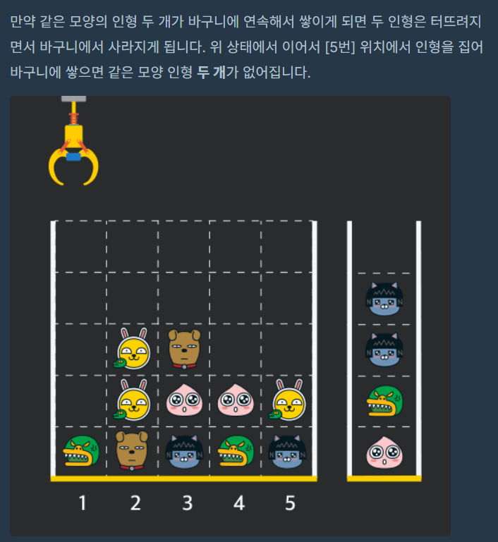 [프로그래머스] 크레인 인형뽑기 게임 본문