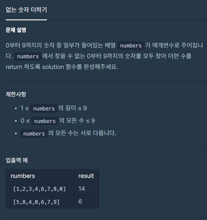 [프로그래머스] 없는 숫자 더하기 본문
