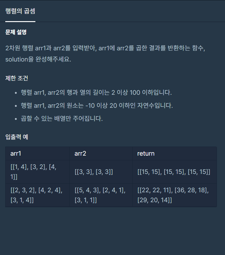 [프로그래머스] 행렬의 곱셈 본문