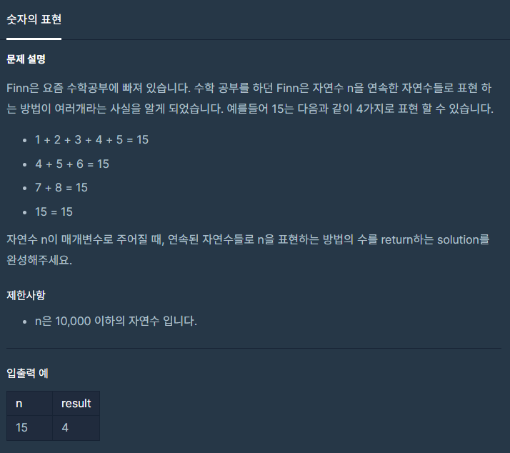 [프로그래머스] 숫자의 표현 본문