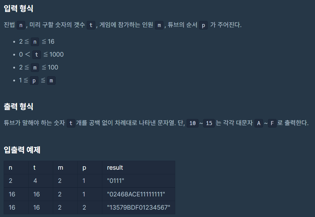 [프로그래머스] n 진수 게임 본문