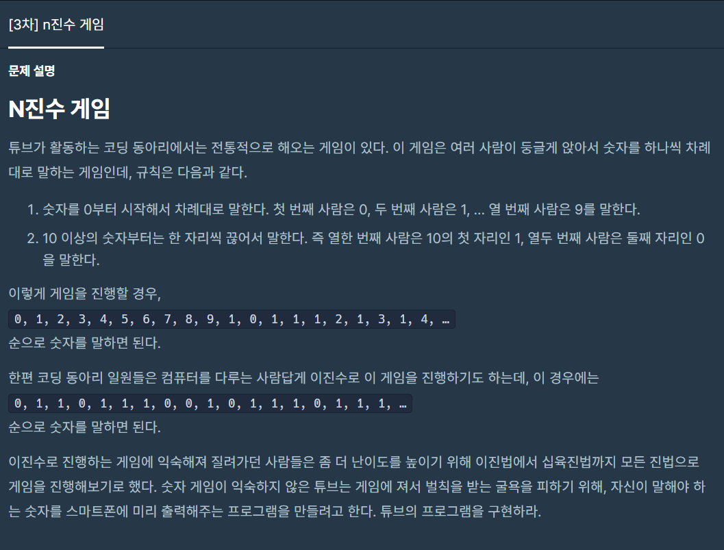 return n_decimal(n, q) + base[mod] # 나머지 index를 이용하여 string 더하기