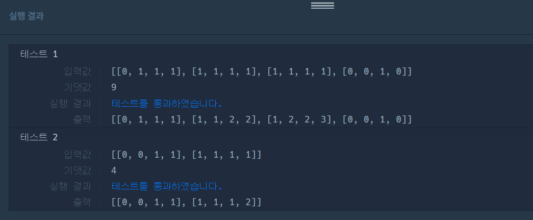 가장 큰 정사각형 찾기 문제는 동적 프로그래밍으로 풀지 않으면 효율성 테스트에서 통과되지 않는다! 처음에 동적 프로그래밍으로 풀어야 한다는 생각을 하기까지 시간이 좀 걸려서 그 과정까