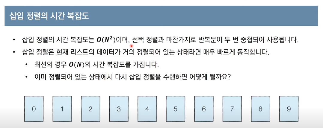 - 처리되지 않은 데이터를 하나씩 골라 적절한 위치에 삽입