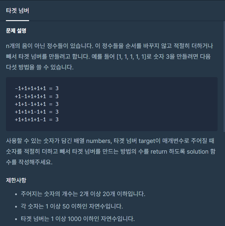 그리고 answer에 더해서 값을 누적하는 것보다 target 에서 값을 빼는 방법이 재귀적으로 가능할 것 같았다.