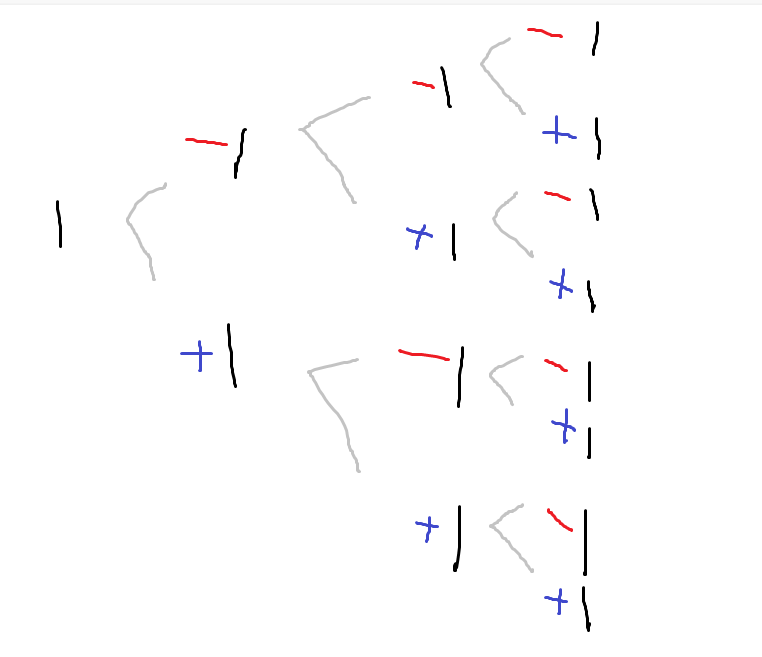 일단 임의의 한 값에 +/- 가 반복되어 나눠 들어가는 dfs 구조로