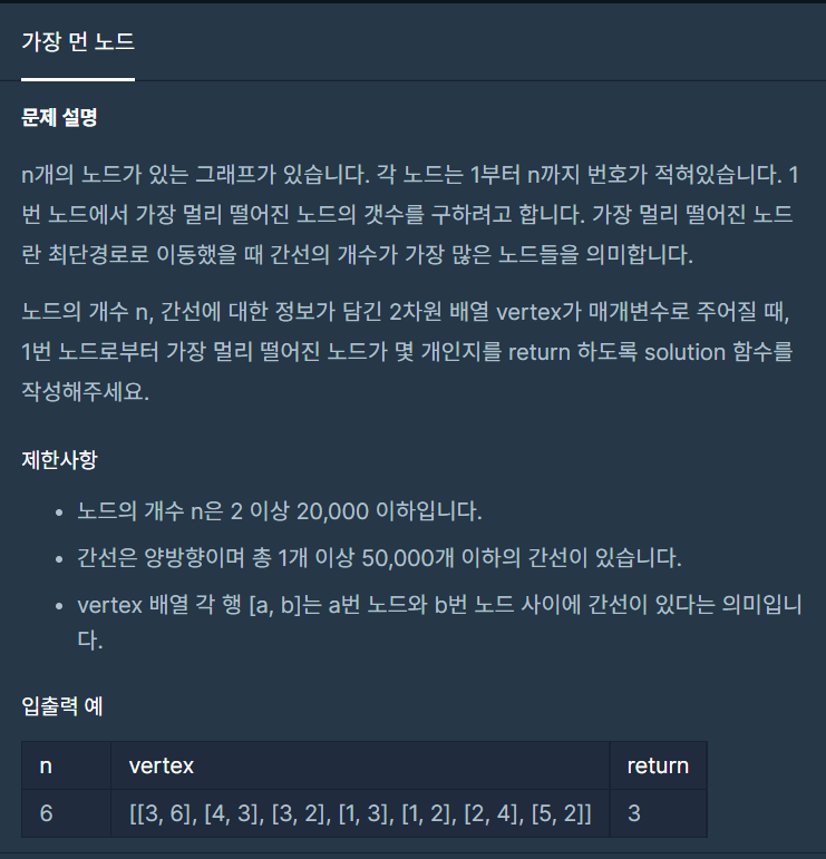 [프로그래머스] 가장 먼 노드 본문