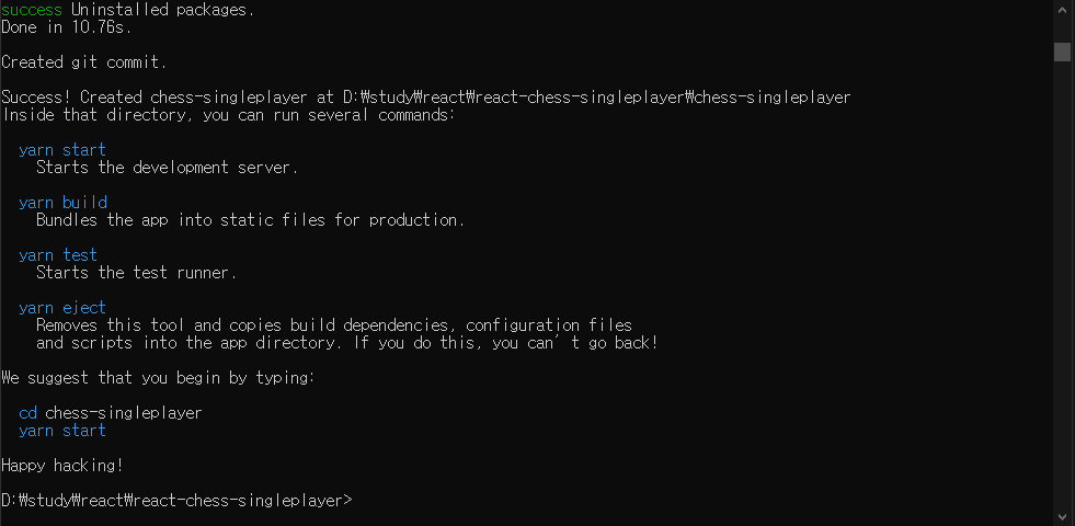 (예전에는 terminal에 npm run 로 입력되는 거로 기억하는데 이젠 yarn start로 입력되네...?!)