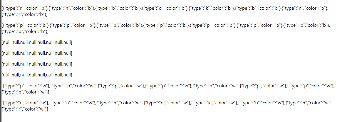 가운데 null은 말 그대로 체스판 초기 상태에 아무 말도 없는 공간이고 b는 흑으로, w는 백으로 보면 된다.