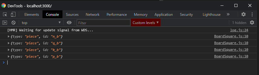 코드 작성 뒤 말들을 움직여 보며 콘솔창을 확인해보면