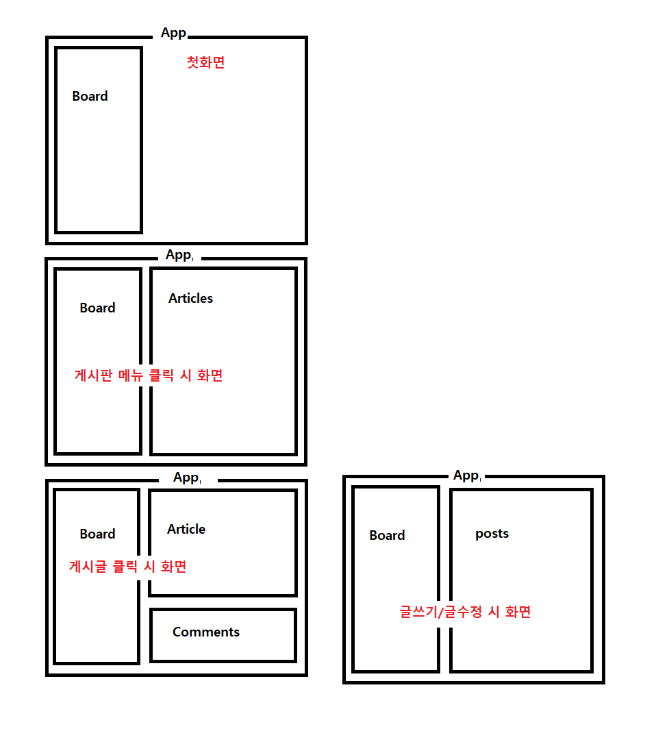 이제 /src/Views.js 에서 sidebar 역할을 할 Board와 주소마다 다른 컴포넌트를 렌더링 해줄 Routes 를 묶어주자.