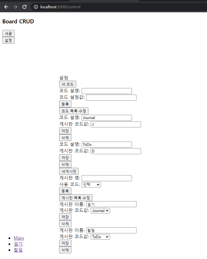 설정 만들면서 의도하던 건 게시판 목록 전체를 불러와서 수정된 게시판들을 한꺼번에 저장하려 했으나 배열 put을 이용하여 수정하는 부분에서 실패하여 결국 개별 수정이 되었다.