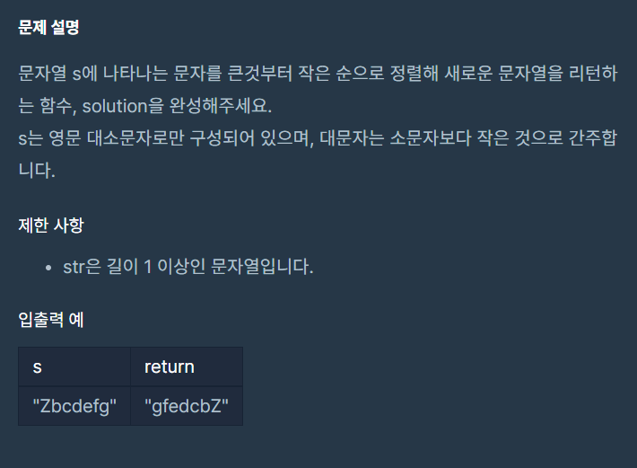 [프로그래머스] 문자열 내림차순으로 배치하기 본문