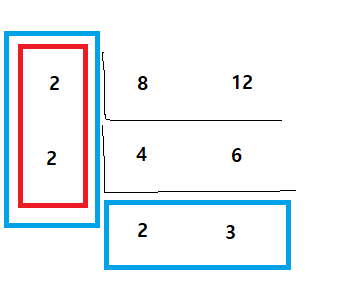 여기서 빨간색 박스 내 숫자들의 곱이 최대공약수이고
