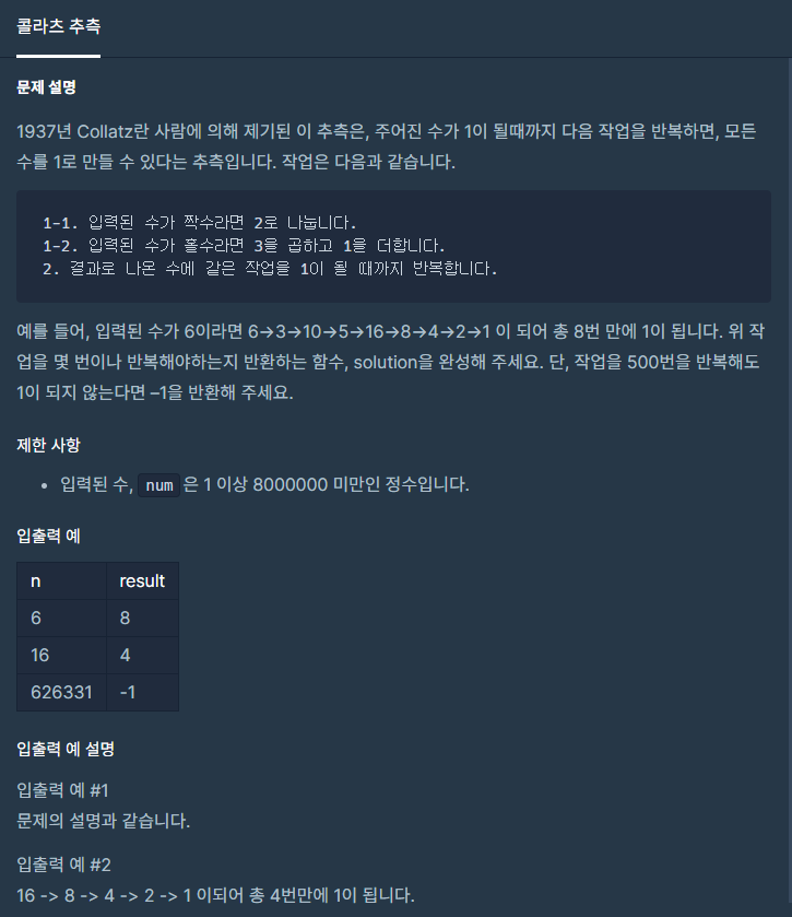 [프로그래머스] 콜라츠 추측 본문